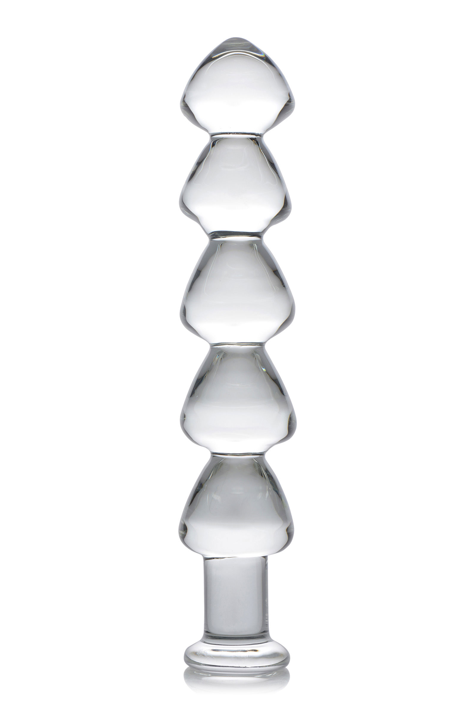These glass anal beads deliver a greater sense of fullness with their weight and hardness. Made of shatter-resistant glass, each of the 5 links on the shaft is smooth and tapered for a comfortable insertion. How much can you fit before you explode with ecstasy? Ideal for temperature play, you can heat or cool this anal dildo by submerging it in hot or cold water before use. This non-porous material is also non-allergenic and body safe.