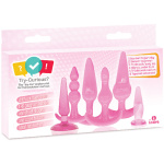 Work your way up and take those backdoor fantasies to the next level with this gently graduating set of pretty, pink, jelly plugs. From “Finger Fun” finger play to the sensual curves of “The cone”, you’ll experience a wide range of sensations sadly missed by anal virgins. Try-curious? Try this!
