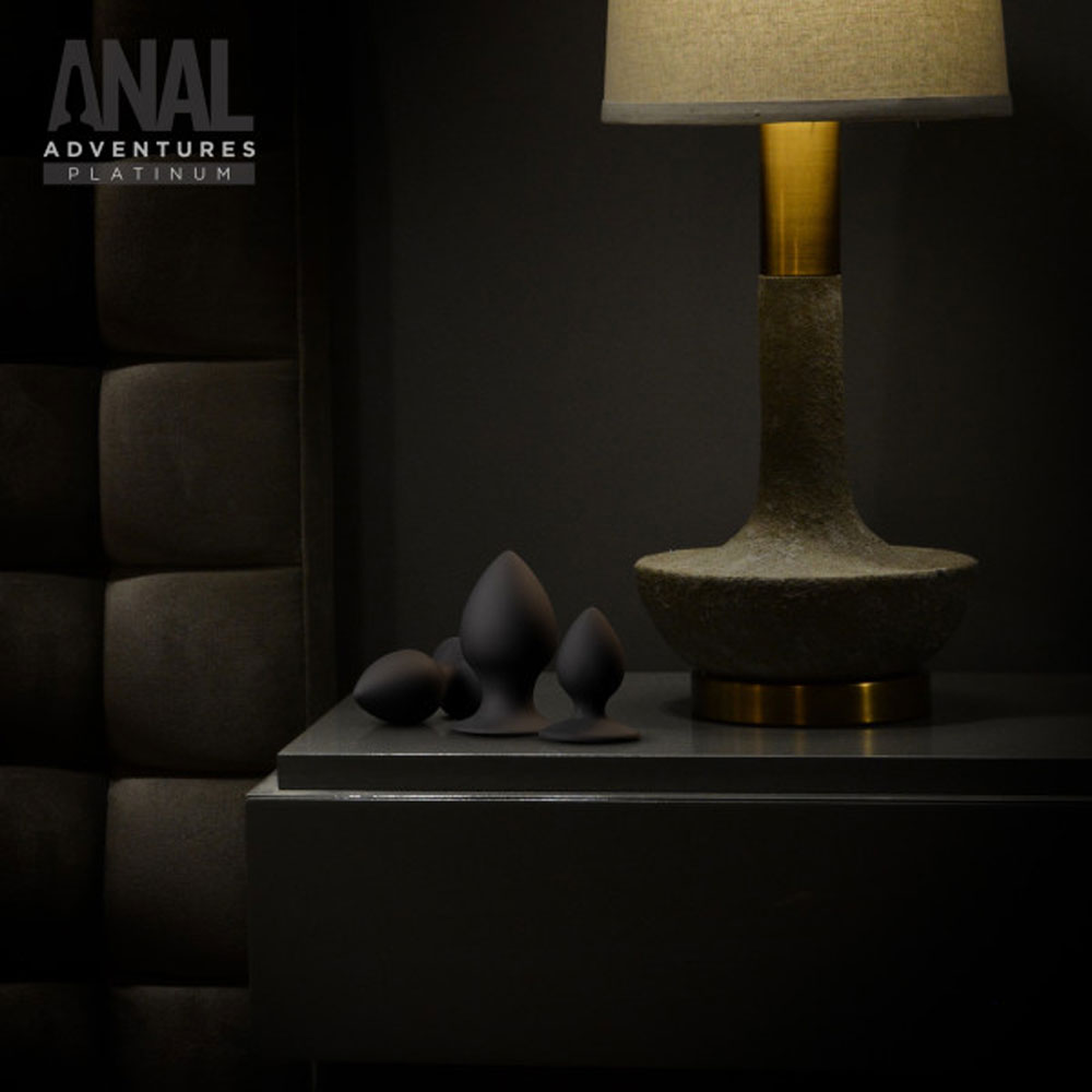 Anal Adventures – Platinum – Silicone Anal Stout Plug Kit – Black