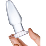 This basic butt plug style from the Glas line features a satisfying 3.5 inch siz e. Like other styles in the Glas line, this butt plug can be heated or chilled t o deliver sensations like no other material! Fracture-resistant and hypoallergen ic, as well as being easy to clean, this toy retains heat and cold to add temper ature play to your bedroom action.