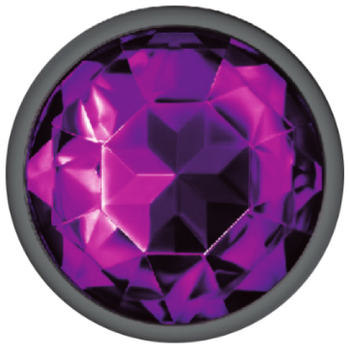 Small, gunmetal, teardrop shaped anal plug with sparkling deep purple colored, round acrylic gemstone. Hypoallergenic, nonporous, body safe, nickel free, aluminum alloy, anal jewelry compatible with all lubricants. Easy to clean and diswasher safe butt plugs.