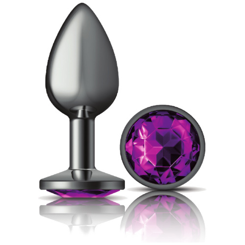 Cheeky Charms-Gunmetal Metal Butt Plug- Round-Deep Purple-Small