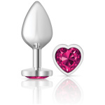 Cheeky Charms-Silver Metal Butt Plug- Heart-Bright Pink-Medium