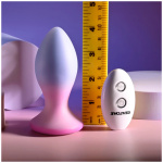 A classic tapered vibrating plug in a dual-layer silicone design. Colorful on the inside with a transparent outer layer, this sturdy remote-controlled plug looks like it belongs in Paradise. It’s got a solid-core center, but is silky smooth to the touch for the perfect hard-soft feel.