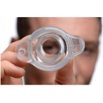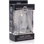 Open wide and let you partner peek inside with this large, unique anal toy. The Gape Glory allows you to discover a whole new part of your partner as you peer into the depths of their ass! This anal plug is clear and hollow for maximum visibility. The opening is also great for liquid play, whether you are delivering an enema or getting creative in other ways. A contoured base makes this plug comfortable for extended wear. This material is compatible with both silicone and water-based lubricants.
