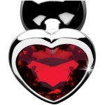 Spark your desire for decadent anal play with this beautiful Booty Sparks plug! Featuring a smooth metal finish in lightweight aluminum, it features a sweet heart shaped gem in a deep crimson red. The slim shaft will keep it from slipping out of place even during vigorous play. You will want to show off your new sparkling booty as you bend over and tease your lover. The nickel free aluminum alloy is nicely weighted and temperature sensitive for the perfect amount of sensation. When play is over, the non-porous material will clean easily without harboring any harmful bacteria. Make that booty sparkle!