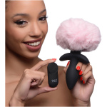 Enjoy the realistic wagging of a tail with this vibrating anal plug! The fluffy, pink faux fur is vegan-friendly and soft against your skin. Watch it wag and control it with 2 different wagging speeds! Enjoy the smooth, plush silicone as the tapered end enters your backdoor and use the remote control to set not only the 2 wagging speeds but also to cycle through 10 different vibration patterns!