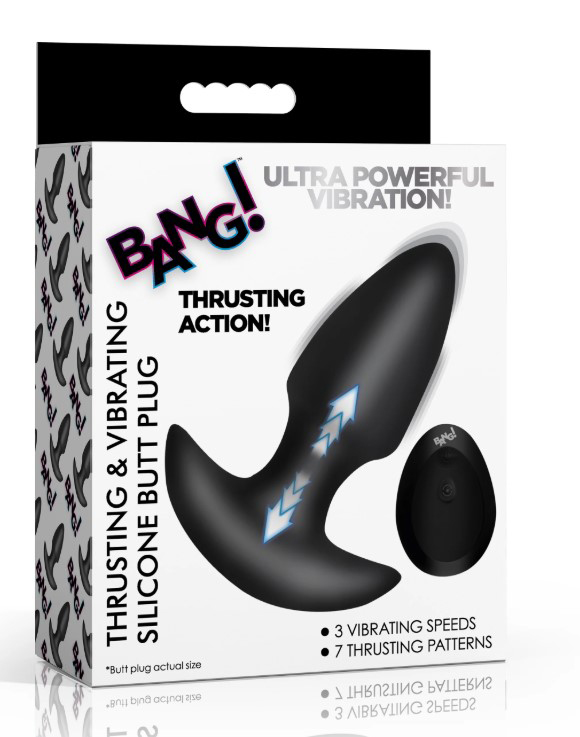 Thrusting and Vibrating Silicone Butt Plug – Black