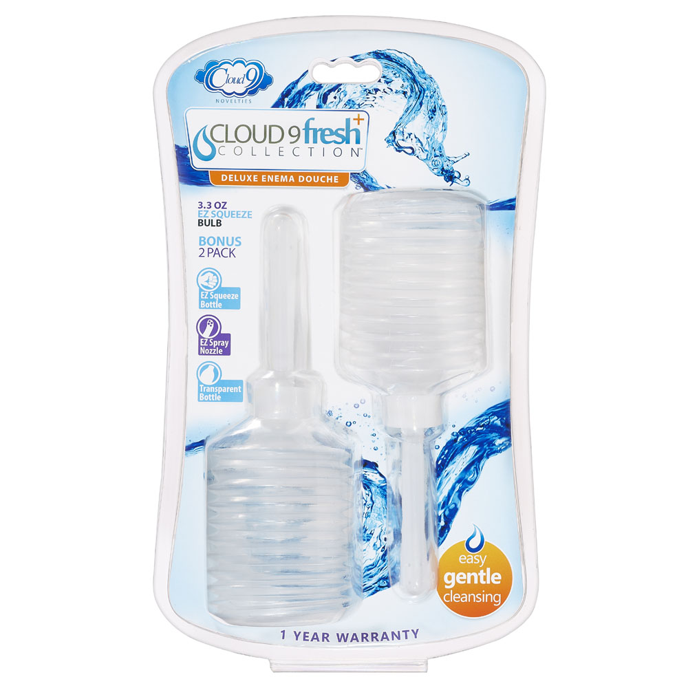 Cloud 9 Fresh EZ Squeeze Bulb makes preparing for intercourse quick and simple. Easy-to-clean, small transparent plastic bottle makes this enema ideal for travel. This soft, easy to use enema bulb is a handy device to clean both the rectum or vagina. Ideal for anal and vaginal douche cleansing prior to play. This Cloud 9 Cleansing kit includes 2 EZ squeeze bulbs for portable use.