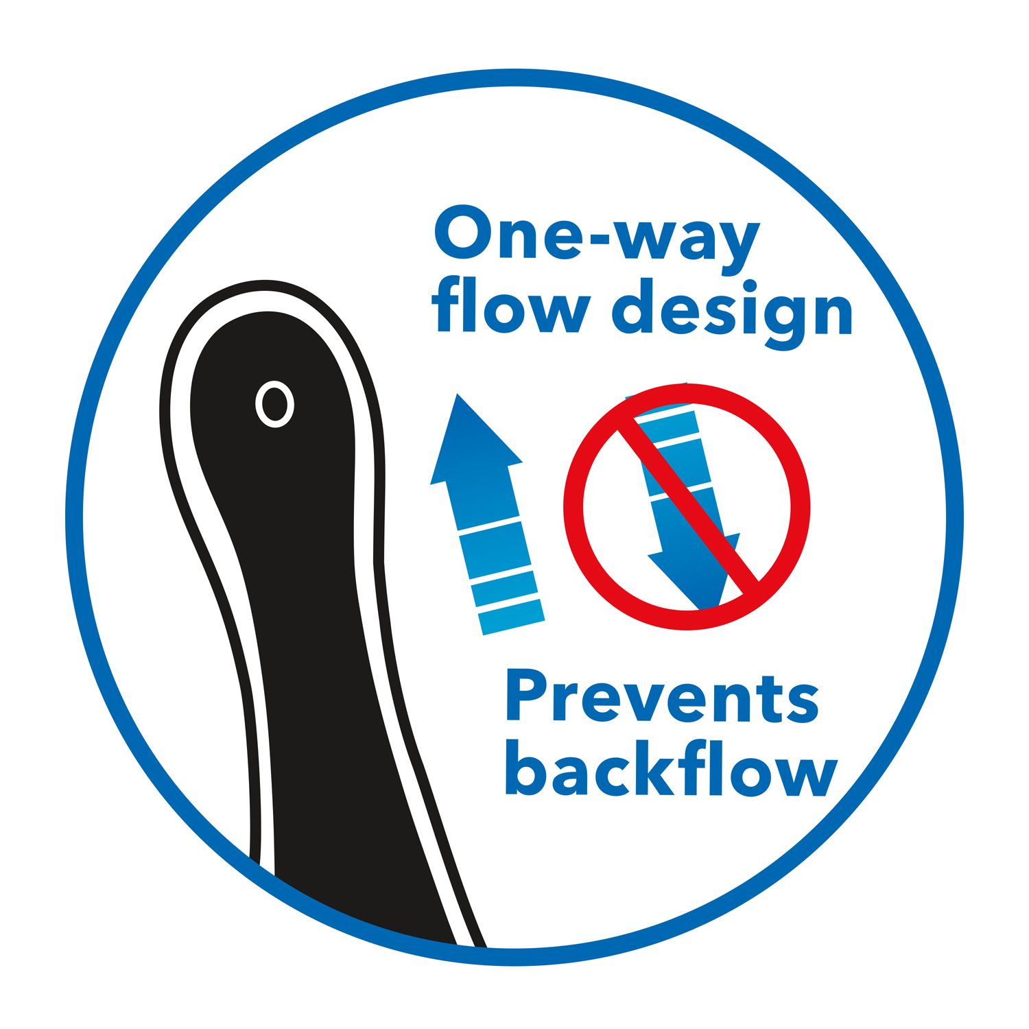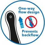 • 1-way flow design prevents backflow