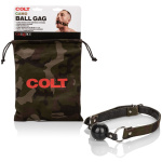 Give yourself over to passion with the masculine Colt® Camo Ball Gag; Bask in primal moans and elevate pleasure with the pliable silicone ball gag, padded vegan leather interior and heavy duty camo canvas.