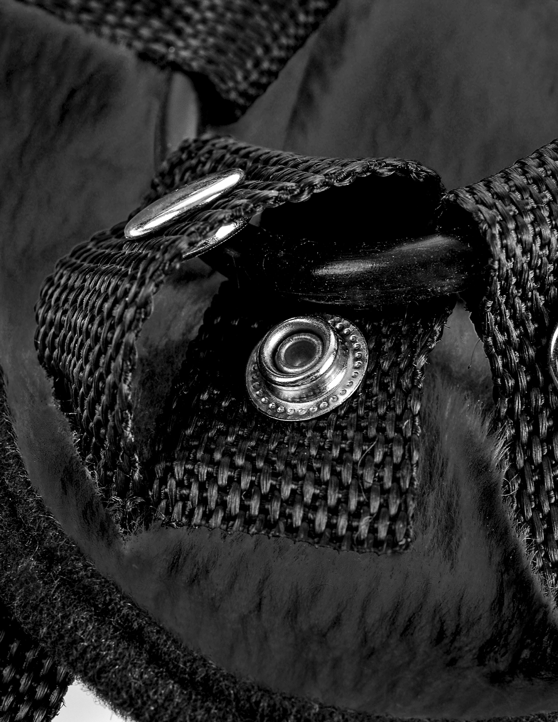 Perfect for first-timers Vibrating Plush Harness is made with a soft neoprene backside that prevents chafing and feels great against your skin. The durable 4-way adjustable nylon straps feature easy plastic slides for the perfect fit on waists up to 44-inches and thighs up to 40-inches. The low-rise fit is super comfortable while the four secure the O-ring and hold everything in place even when the action heats up. Three included silicone O-rings allow you to interchange a range of dildos with a diameter up to 2-inches.