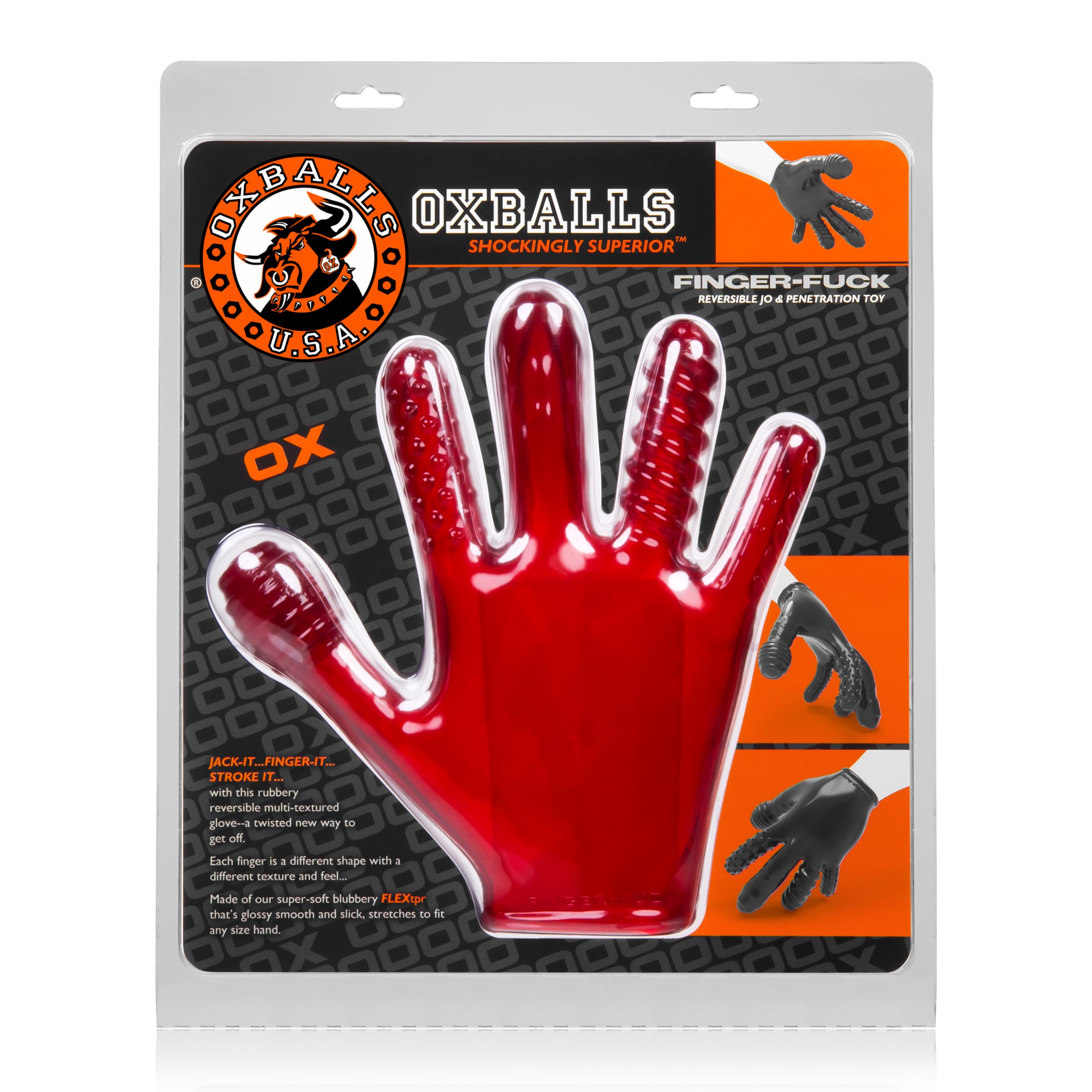 FINGER FUCK is a soft, super rubbery glove designed to transform your hand into the ultimate hole-explorer. FINGER FUCK is made from our signature FLEX-TPR so it stretches to fit almost any sized mitt…the sleek shiny material looks fuckin’ nasty glistening with lube and disappearing up some hungry pig’s hole.