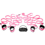 The Frisky Bedroom Restraint Kit is portable and easily restrains with H-shaped straps that fit underneath any size bed and reach around to securely cuff ankles and wrists and restrict movement. The sturdy Neoprene cuffs are soft and comfortable, yet close securely with heavy duty Velcro. Swivel clips attach the cuffs to straps underneath the mattress. Enjoy putting your partner in compromising positions as you tease and please them until you decide they are released!