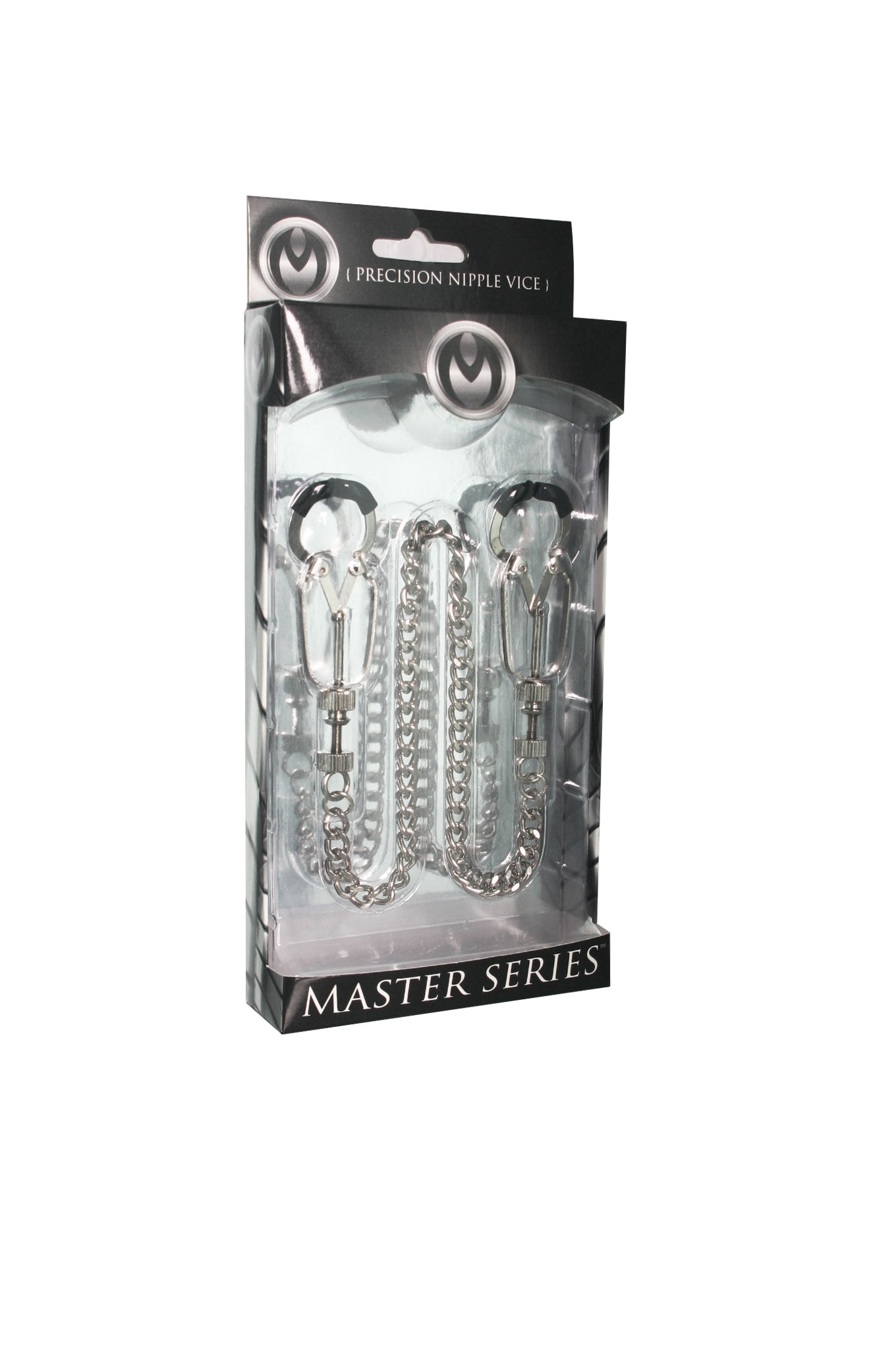 Designed for precision and strength, the Bauhaus Nipple Vice comes to you with two clamps that can be adjusted to your desired level of tightness with the adjusting screws located at the base. The tips are covered in soft TPR with the addition of a delicate curve at the very end that assists in gripping the skin of your subject. Ending this commanding piece is the addition of a 12 inch connecting chain that looks oh so enticing as it hangs from the captive nipples of your plaything. Each clamp measures 3 inches in length and opens to 0.5 inches wide.