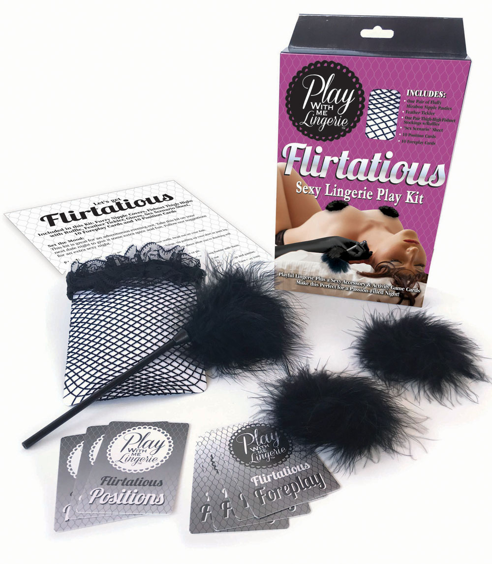 Dress up and play seductive games with this Lingerie Play Kit. Slip on the sexy stockings, and apply the coquettish mirabou nipple pasties to entice your lover into some playful sexy fun.