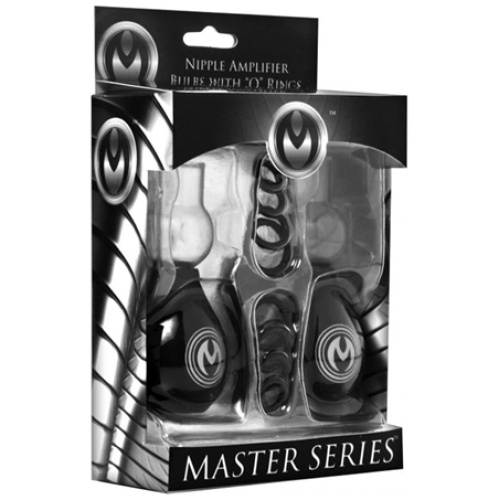 The Pyramid Nipple Amplifier Bulbs are an erotic way to have fuller more erect nipples. This enlarger system has four graduated O rings to place over the nipples to keep them standing at attention. Simply slip the desired size ring over the open end of the pump prior to use fit the glass pump over the nipple, and squeeze until you reach your perfect size. Then slide the stretchy rubber ring down over your engorged nipple until it reaches the base. Two different sized pumps are included for a custom fits on any size.