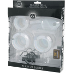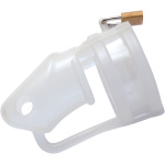 Sexual denial has never been this comfortably restrictive. Flexible and lightweight, the Sado Chamber Chastity Cage is designed for long term wear. This intriguing confinement piece will hold them in submission for extended periods, while remaining undetected under clothing. The cage and rings are made entirely of premium silicone. Choose one of the 3 provided rings, place it behind the cock and balls, then slide the cage over the penis. Slide the straps through the cage. Lock them up using either the included padlock of individually numbered temporary locks. The cage of the piece is outfitted with ventilation holes, allowing the wearer to wash without removal. The Sado Chamber comes complete with a silicone cock cage, three sized rings, two tie down straps, a padlock with two keys, and five individually numbered plastic locks.