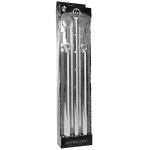 Keep your plaything in place and spread them wide with this sexy spreader bar. Made of durable steel, it has a wide range of adjustability. This bar has eyebolts securely attached to each end. Wrist and ankle cuffs can be attached to the bar as you desire, making it not only a vital accessory to your bondage play, but a warm welcome to any devious collection.