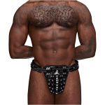 The Taurus Thong features a padded comfort waistband, cage pouch, 1 inch adjustable buckle t-back, decorative back ring & chastitity lock & key.