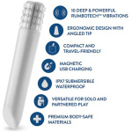Awaken your passion with Oh My Gem Bold. Adorned with radiant Diamond gems, this elegant vibe captures the allure of the heirloom precious Diamond stone, bringing a touch of sophistication to every intimate moment. Experience 10 deep rumbly vibration modes—5 speeds and 5 patterns—powered by Blush’s RumboTech for deep, resonant sensations. Designed with beauty and ease, Bold’s sleek, petite form is perfect for travel, featuring an angled precision tip that delivers pinpoint pleasure and stimulation. Crafted from body-safe materials, it’s IPX7 waterproof and recharges effortlessly with a magnetic USB, inviting you to explore wherever your desires take you. Make Oh My Gem Bold the crown jewel of your collection—a celebration of sensuality and self-love. Savor its powerful vibrations and luxurious allure, time after time.
