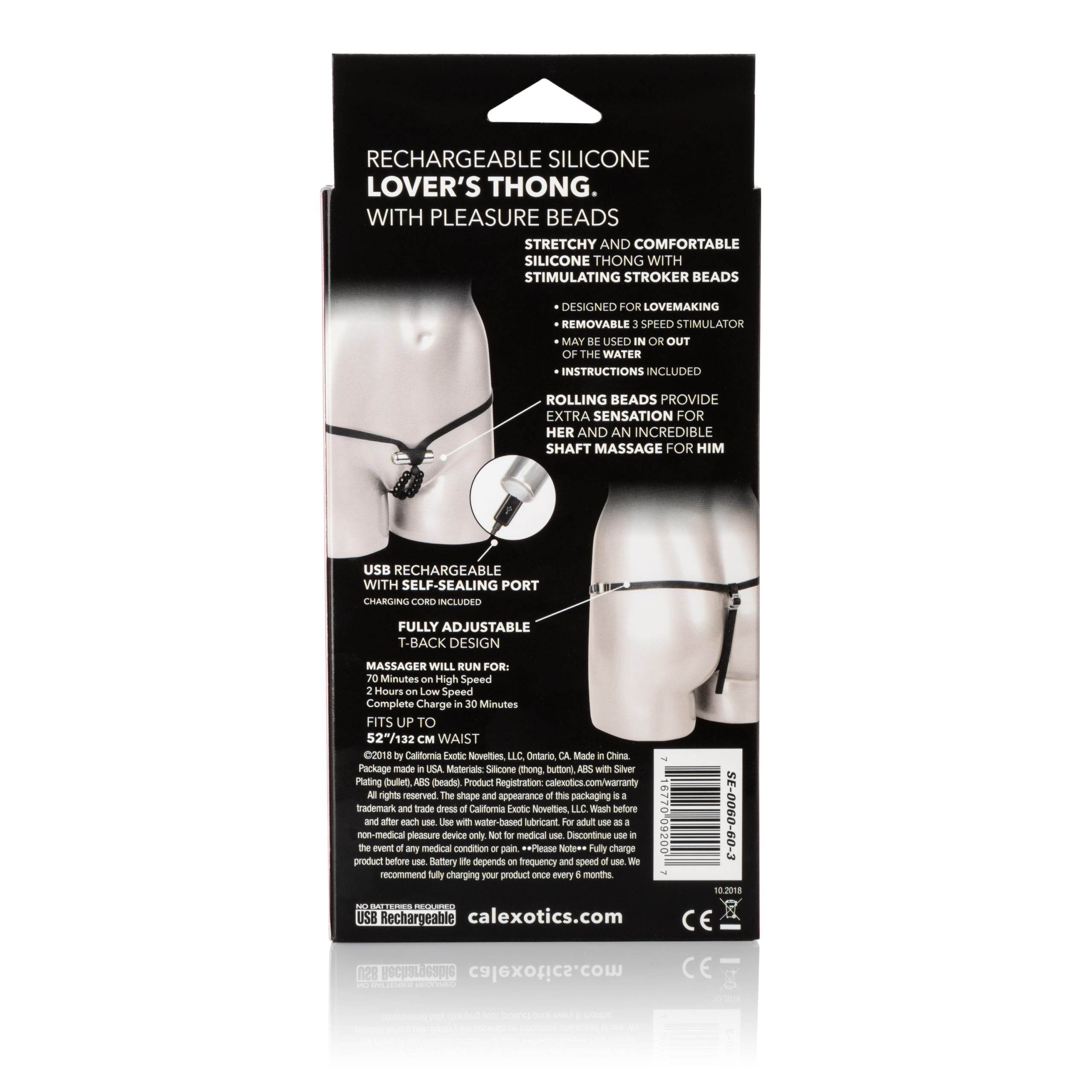 Fall in love with intense stimulation with the couples-friendly Rechargeable Silicone Lover’s Thong with Pleasure Beads. Tease and tantalize external sweet spots with the thrilling stroker beads, sexy thong harness design and powerful 3-speed bullet massager. The rechargeable bullet can be used independently from the stroker panties for mind-blowing stimulation. The ravishing roller beads are designed to hug your most intimate curves for sensational couples stimulation. While the pleasure beads give her tantalizing external stimulation, he will adore the intense shaft stroking pleasure.