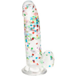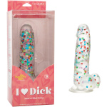 The Naughty Bits I Love Dick Heart Filled Dong is one heart-on you will love! The playful dong is crafted with a life-like feel, suction cup base, and sparkling heart confetti design. Deliver the pleasure you’ve been craving with a 6″ (15.24 cm) long dong with helmet-top, textured shaft, and life-like balls. The extremely flexible design makes this an extra comfortable ride. The flanged base has a sturdy suction cup that can be used in a harness or mounted to a flat surface for sensation hands-free fun. The Naughty Bits collection is made to stand out on any nightstand with eye-catching designs and orgasmic features. The ultra plush material and playfulness of this naughty dong will make even the most stylish lover smiling before and after.