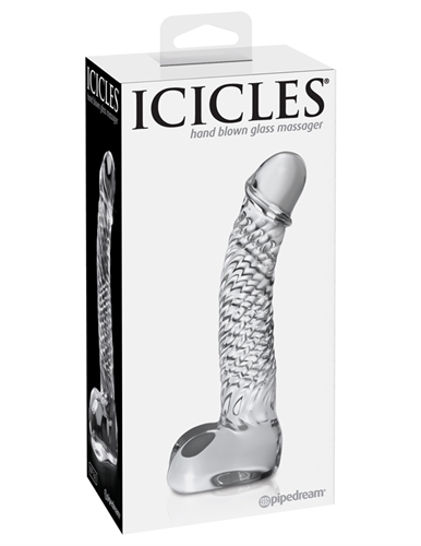 Perfect for beginners this elegant glass massager features a tapered tip to ease insertion and a pronounced head that hits all the right spots while the balls at the base offer an ultra-realistic experience. Cleverly curved for explosive G-Spot or P-Spot stimulation you will enjoy additional stimulation thanks to the swirly ribbed shaft.