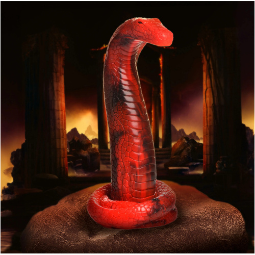 Uncoil the mysteries of this sensual serpent while exploring new sensations of pleasure! As it slithers into your den, the tapered tip of its head makes insertion easier while the unusual shape of its body and texture of the scales add stimulation you’ve never had before! The curve of its neck presses against your most sensitive spots as it moves inside. The red and black snake is girthy and long with a firm yet flexible body. Made out of smooth and slightly tacky premium silicone, it is phthalate-free and body-safe to use with water-based lubricants. Enjoy riding it hands-free when you press the strong, suction-cup base against any flat surface! Combine it with a strapon harness of your choice for partner play! Whether for fantasy roleplay, kinky Cosplay or just to experience something new, this Creature Cocks dildo is the perfect addition to your toy collection! You can even put it on a shelf and it will look like nothing more than a toy snake. No one else has to know how you play with it.