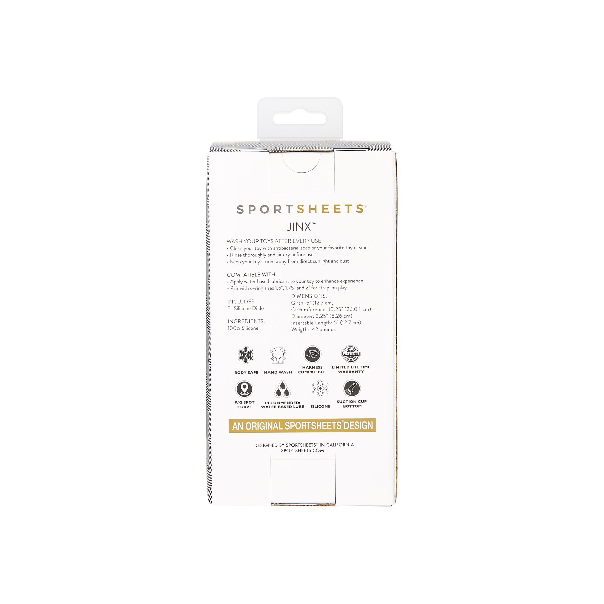 Jinx is a phthalate-free, non-porous, hypoallergenic, 5 inch solid silicone dildo with a suction cup base.