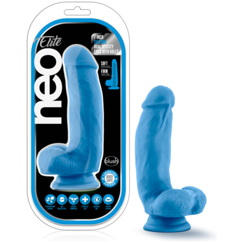 Neo – 7.5 Inch Dual Density Cock With Balls – Neon Blue