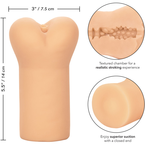 Indulge in thrilling wet dreams with the filthy Cheap Thrills The French Maid masturbation stroker. The closed-end design provides superior suction, while the uniquely textured chamber and ultra soft, stretchy PureSkin material thrill with life-like sensation.