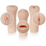 Fulfill your fantasies with these 3 life-like strokers designed to match your erotic mood. Each stroker features its own unique inner channel textures to mimic the pleasure of anal, vaginal and oral experiences. Use lubricant to enhance your stroking pleasure.