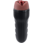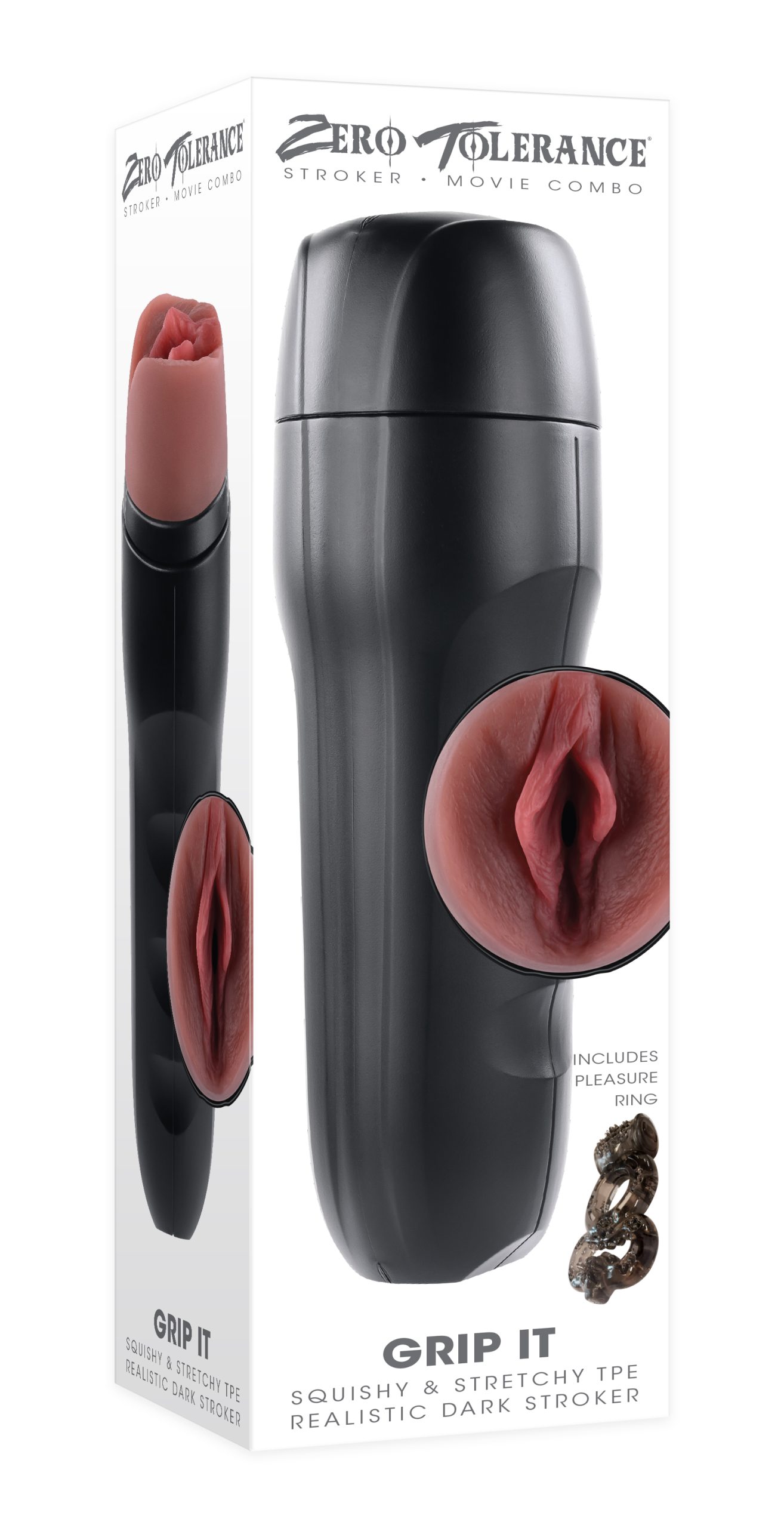 Experience the ultimate release with this soft and stretchy canister stroker that’s incredibly life-like. Slip through the pink vaginal lips and feel the tight inner channel that’s textured for a realistic ride, then enhance your experience with the squeezable canister that just might put you over the edge! Try the included vibrating C-ring to keep blood flow at its maximum potential- and watch the free movie download for erotic inspiration. Removable sleeve for cleaning, water submersible.