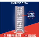 The RIZE! Ribz is the ultimate stroker. The soft ribbed orifice strokes and massages you as you control the tightness by applying desired pressure. Self-lubricating, just add saliva or water and you’re ready to play. It glows in the dark to add excitement to your night! Ribz is open-ended, easy to clean and contains no phthalates, paraffins, or latex.