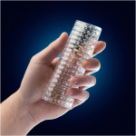 Sleek, modern, and loaded with sensation, the RIZE! Strokez sleeve features stimulating ticklers that cause waves of pleasure with each stroke. Turn it inside out and explore a smooth stroke too. Tight enough to cause pressure but soft and flexible enough for easy insertion. Use it with a water-based lubricant. Strokes is open-ended, easy to clean and contains no phthalates, paraffins, or latex.
