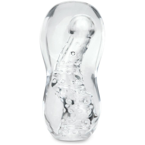 The Gripz Wavy Squeezable Clear Stroker features a stimulating ribbed inner texture that surrounds the shaft with its translucent form, offering a satisfying view of all the action. Manually squeeze and stroke as you would normally while Wavy takes it to the next level.