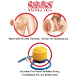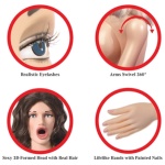 This incredible life-size inflatable love doll was meticulously designed with features luxurious lifelike hair realistic eyelashes and an open mouth that is her really come to life with arms that swivel 360 degrees and throat can take it. Watch her really come to life with arms that swivel 360 degrees and delightfully painted finger and toenails. Give her firm and perky breasts a squeeze while you enjoy her ultra-lifelike Fanta-Flesh pussy and ass that feels even better than the real thing. The Fanta Flesh pussy and ass are removable for easy in-depth cleaning and can even be enjoyed separately for masturbation.