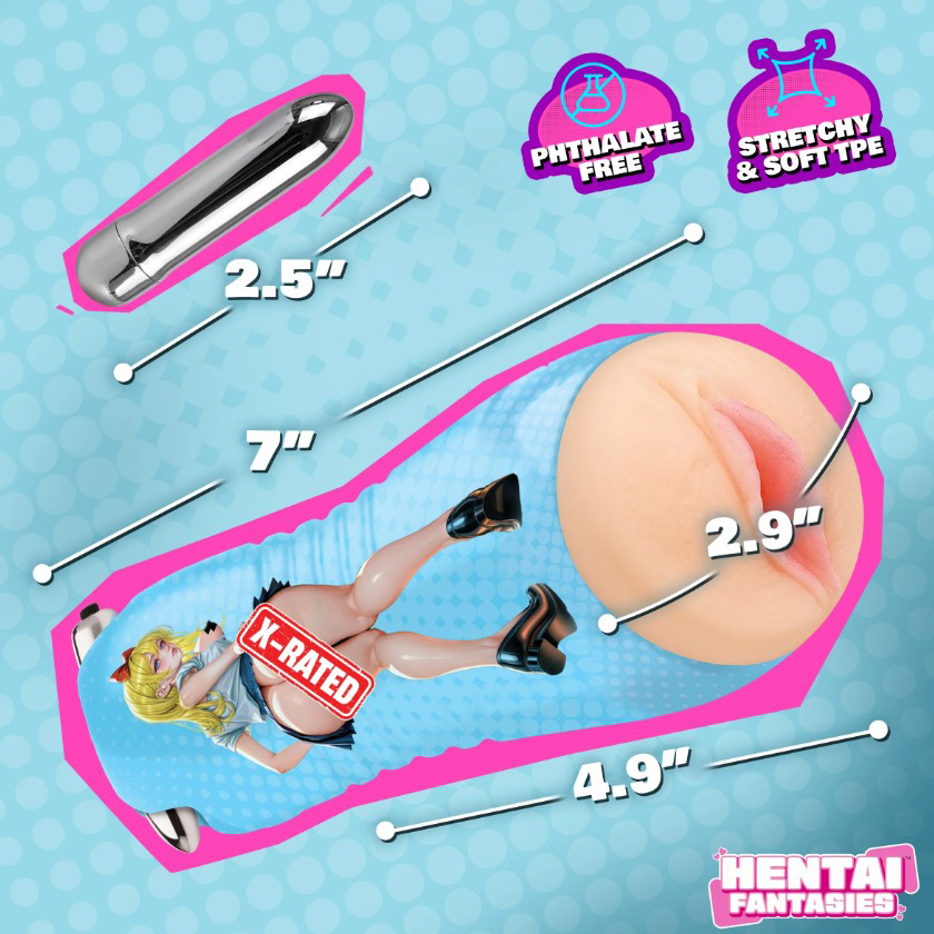 The Asuna the School Girl Vibrating Pussy Stroker can help you fulfill your schoolgirl fantasy. This playful pocket pal packs a realistic TPE sleeve with a tight entry. It grips like the real vaginal canal, and you can slide in up to 4.9″ deep. Let the included vibrating bullet unleash 3 speeds and 7 patterns for next-level stroking ecstasy.