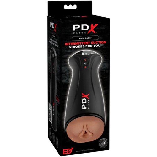The PDX ELITE Fuck-Gasm elevates masturbation with powerful intermittent suction and vibration for the ultimate stroker experience. It’s a perfect storm of sensation for heightened solo sex sessions that can be customized to your personal moods! Get ready for explosive hands-free pleasure as the Intermittent Suction Technology automatically sucks your penis in and out. Designed for ultimate pleasure, the textured walls of the ultra-soft sleeve is like nothing you’ve ever felt before! The Fuck-Gasm is ready when you are, and will deliver the most intense orgasms you’ve ever had!