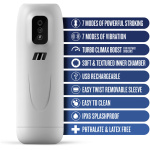 The M for Men Robo-Bator is armed to deliver a world of sexual power! This powerhouse male masturbator comes highly equipped with two elite performance functions, including 7 commanding vibrating and 7 stroking modes, delivering a truly mind-blowing experience. The soft and textured inner chamber has a tight fit to secure you for pleasure and feels incredibly smooth and realistic when inside. Slide in with ease, and choose your desired modes with just a few clicks of the button, harnessing the power of the Robo-Bator. Once you’re close to your max, tap the turbo climax boost to activate the full force, driving your stroker to the highest level of powerful vibrations for an incredible climax finish! With easy USB charging, power up your stroker with ease so you can go longer and harder than before. Combining top class technology with a bold design, the Robo-Bator stands as a titan amongst men’s stroker. Get ready to unleash your desires with this dream sex machine!