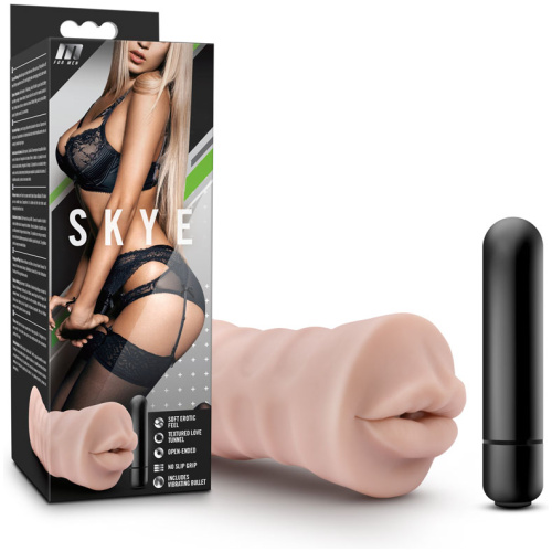 Skye’s mouth is open wide, ready to take you. Made of lifelike X5, Skye offers the perfect balance of soft and firm. Plus, the one-speed vibrating bullet delivers even more sensation up and down your shaft. Sized for convenient one-hand stroking, she is open-ended to fit all lengths. You control the speed and depth of your thrusts. Enjoy Skye alone or with your partner.