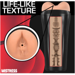 Satisfy your cravings for stroking your rod in a tight, little hole with this vibrating masturbator from the Mistress line! Imagine penetrating this realistic, soft and stretchy, premium TPE hole of your Mistress and enjoying the textured tunnel as it squeezes and massages your rod with each stroke! Use it to train yourself to last longer and practice edging. Enhance your erotic fantasies with a physical prop. Make those long-distance relationships more interesting by bringing a stroker to the call. With 4 speeds and 7 patterns of powerful vibration, you can push yourself to the edge or over it and enjoy the satisfying enhanced pleasure that only a stroker like this can deliver! Completely body-safe, this TPE stroker is phthalate-free and latex-free. Use only with water-based lubricant. Do not submerge under water, but use as much lube as you like! Use the USB cable to recharge between uses and keep the dust cap on to keep it clean and debris-free.