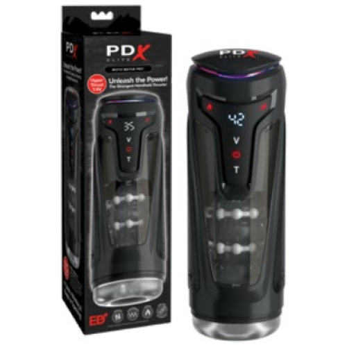 The PDX ELITE MOTO-BATOR PROTM takes masturbation to the next level! One of the strongest thrusters ever designed, its ultra-powerful thrusting, vibration, and warming sensations will give you the ultimate stroker experience! It’s a perfect combination of sensations that can be customized to get your rocks off! Get ready for 5 explosive modes of thrusting and 5 modes of exhilarating vibration, wrapping your penis with rows and rows of ultra-soft nubbies. The 2 levels of warming modes will make your cock feel right at home! Your ultimate stroke-job experience is ready when you are!