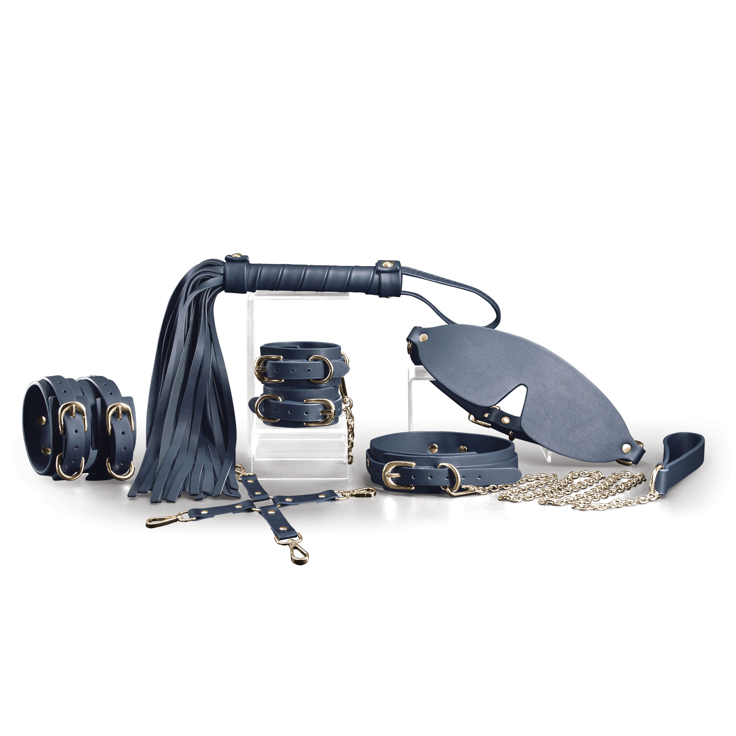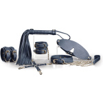 Bondage Couture brings your BDSM roleplaying fantasies to life with an all-in-one 6-piece kit of top-quality restraints and accessories, including wrist and ankle cuffs, collar and leash, hog-tie, blindfold, and whip. Made of synthetic materials and nickel-free hardware, all items are body-safe, durable, and crafted for comfort—perfect for an evening of bold and imaginative play!