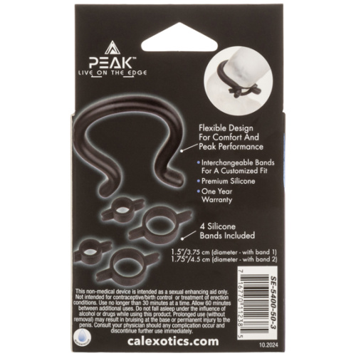 Elevate your pleasure and performance with the Peak Prolong Kit, expertly designed to enhance your endurance and intensity. Reach new heights of satisfaction with a collection that includes a sleek enhancer and 4 interchangeable Silicone bands. Each component is crafted for comfort and flexibility, ensuring you can focus fully on the experience and find your peak performance.