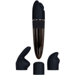 Four hot sensations in one versatile 7-speed vibe! Tease your clit with each unique slip-on silicone cap that makes this powerful toy into a multiple “O” pleaser. Try the nubby fin that burrows it’s way into any crevice, or angeled lipstick shape that presses all the right buttons with it’s flat raised circle. Or maybe you want busy bunny ears that won’t stop bopping? Or a tickler top for an unexpected tingle? Pick a new feeling everytime! Or turn the vibe around to play with the smooth tip for a classic touch. This rechargeable mini-vibe kit is completely water submersible and easy to clean with Evolved Toy Cleaner and a warm water rinse.