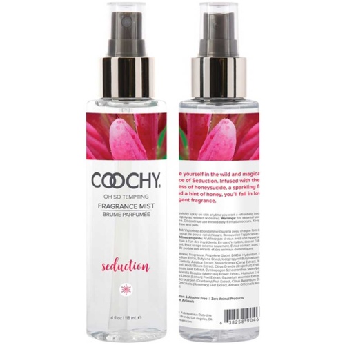 Coochy Oh So Tempting Fragrance Mist! Immerse yourself in the wild and magical fragrance of Seduction. Infused with the sunny sweetness of honeysuckle, a sparkling fruity twist and a hint of honey, you’ll fall in love with this elegant fragrance. Perfect for keeping skin hydrated throughout the day with a subtle kiss of fragrance.