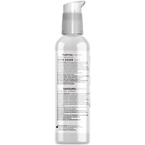 Apply liberally to indulge in a delectable Sweethearts experience. Gently rub or blow on the lush liquid to release an alluring warmth. Or savor slippery goodness when added to a massage or used for lubrication. Sweethearts 4-in-1 Playful Flavors captivates and inspires all of your senses!