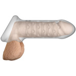 Sometimes you just want a little more. Slide into the OptiMALE Thin Extender with Ball Strap for increased length and thickness. Soft and stretchy to perfectly hug your shaft, this size-boosting sleeve stretches six inches from its ball-teasing base to a firm head in a sheer, frosted material that looks and feels incredible. The extender’s ribbed, studded interior stimulates the penis, while the attached ball strap holds it in place and tugs at the balls for added pleasure with every thrust.